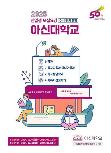 뒤돌아가기 아신대학교http://www.acts.ac.kr/1503구분사립, 4년제전화031-770-7701주소경기 양평군 옥천면 경강로 1276 아세아연합신학대학교입학사이트모집요강 0 댓글 추가하기... 아신대학교 등록된 댓글이 없습니다. 이전글 국제대학교목록